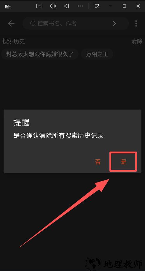 2、查看搜索历史,可一键清除历史记录