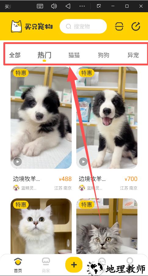 1、特惠专区:查看限时优惠宠物(如边境牧羊犬¥488、银渐层¥500等)