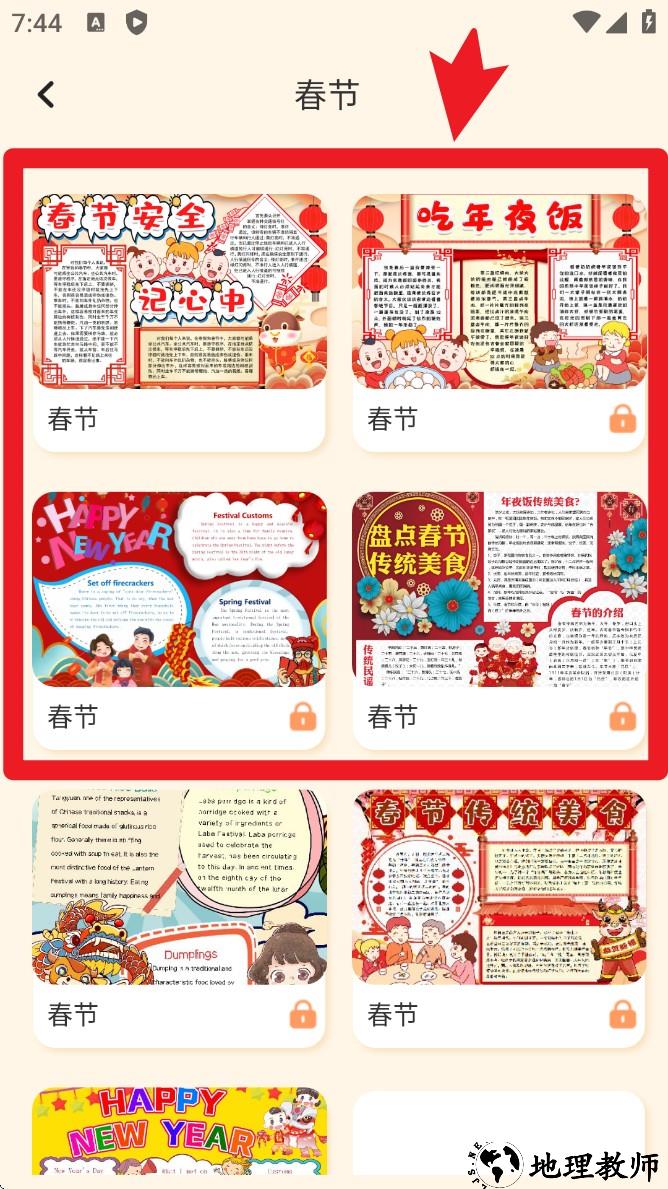 2. 点击春节分类,即可查看多款春节主题手抄报模板,支持预览与选择下载。