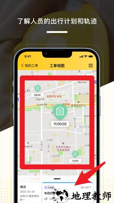 2、精准定位导航:根据客户位置规划路线,实时记录行程并同步管理端。