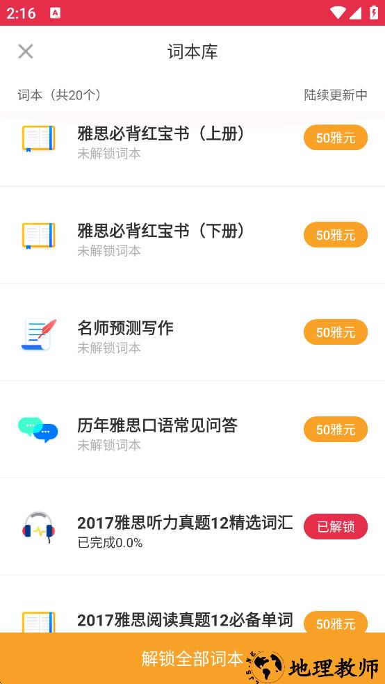 3、成为会员后,可解锁全部词本资源,同时获取听力、口语相关学习素材,拓展备考内容。