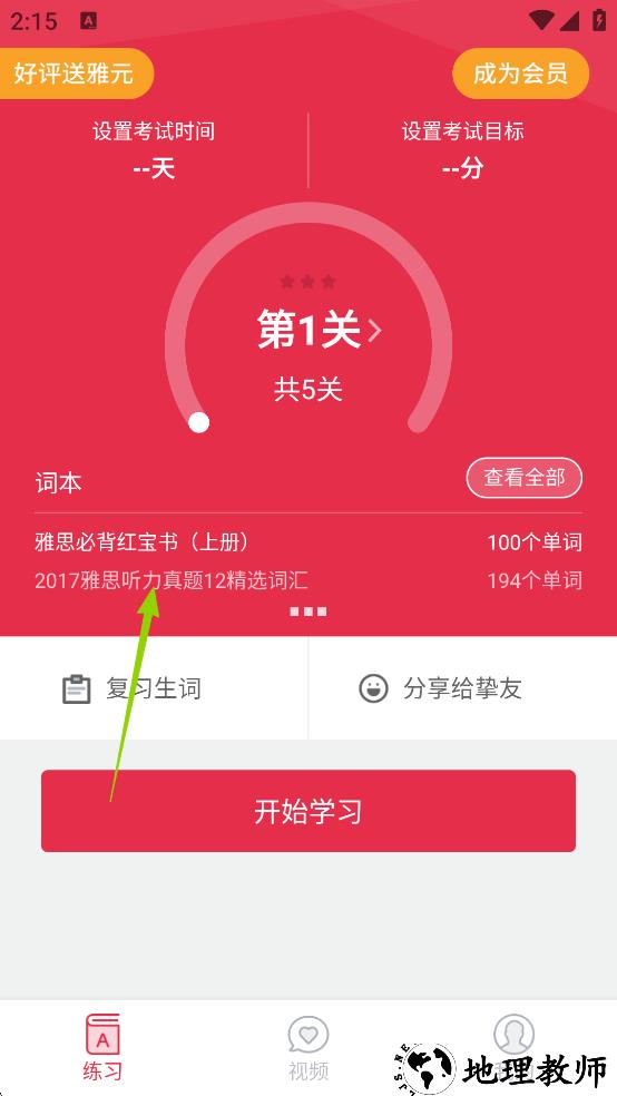 1、打开雅思单词斩 APP,按照提示完成账号注册或登录操作,进入软件主界面。