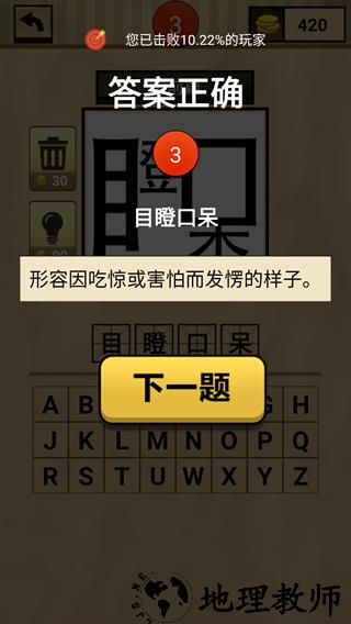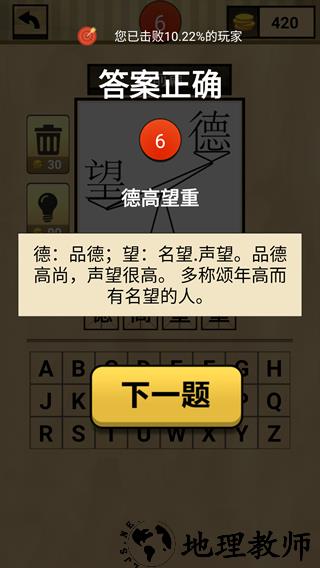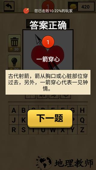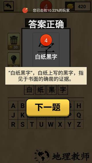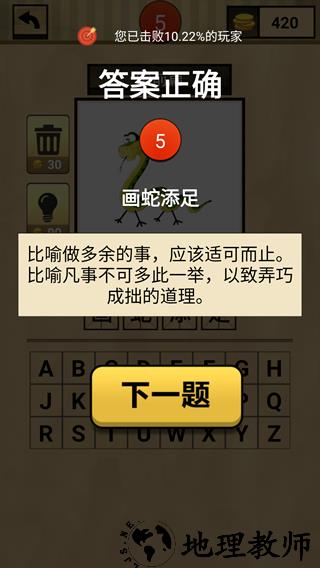 我爱猜成语免费版是一款益智闯关趣味挑战游戏,多样玩法模式自由选择,融入了海量的成语知识与详细的典故、成语出处、成语解析等让玩家在游玩的过程中也可以学习到更多知识与感受我们中华上下五千年文化的魅力传承,有着海量的关卡,每一个关卡都有着不同的成语解答、填空补全、看图猜词等玩法,玩起来不枯燥十分趣味,感兴趣的玩家快来地理教师下载网下载体验一下吧!