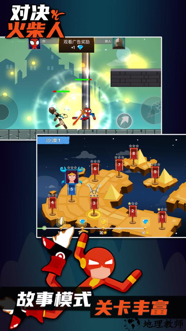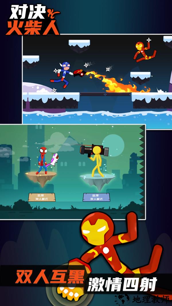 1. 游戏模式:火柴对决提供了多种游戏模式,包括单人模式、双人模式和多人竞技对战模式,玩家可以根据自己的喜好选择不同的模式进行游戏。