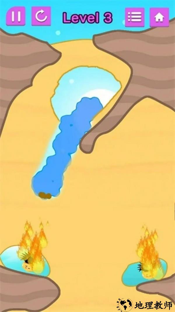 3. 扑灭火焰:当水流成功接触到火焰时,火焰会被扑灭,玩家即可过关。