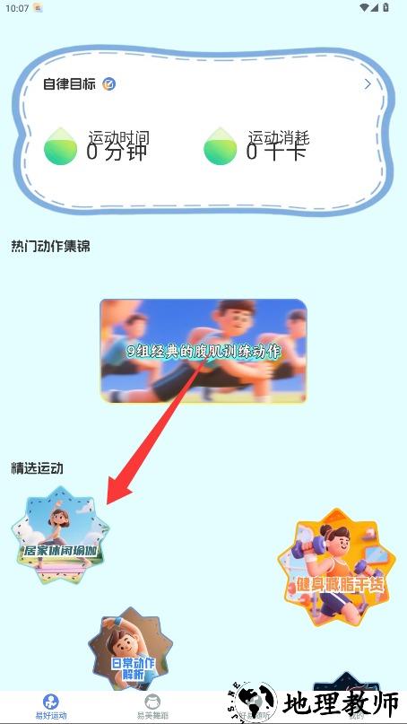 2、在首页找到精选运动专区浏览推荐课程,选择感兴趣的运动项目开始锻炼。
