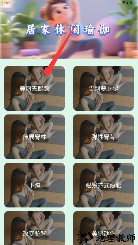 3、根据需求选择具体训练的内容,如天鹅颈塑形、脊柱伸展等专项训练课程。