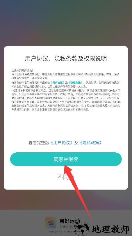1、初次使用需阅读用户服务协议与隐私政策,确认后点击同意并继续选项进入应用。