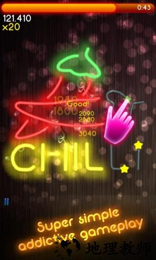 这款游戏的魅力是无穷的,其漂亮的霓虹灯图案设计,你只要快速有效地用手指勾画 出霓虹灯的形状,点亮瞬间你会惊讶于其斑斓的色彩。