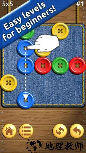 剪扣子Buttons and Scissors是一款益智消除游戏,关卡中有很多颜色的扣子,每次只能剪在同一直线上同一颜色的扣子,你的任务就是把扣子全部剪完。