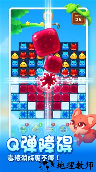 5、【游戏玩法】:滑动手指让三个及以上同色小动物横竖相连即可消除,完成每关指定的消除目标就能顺利过关。