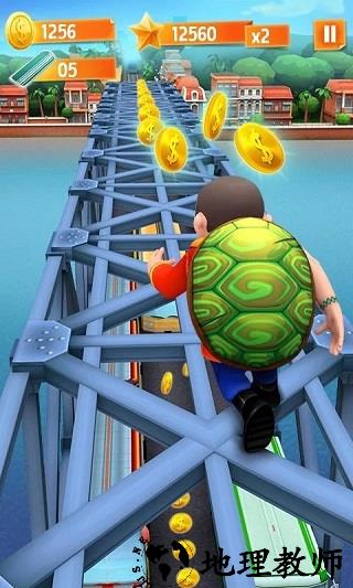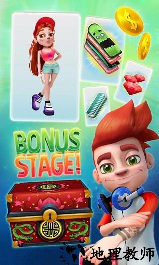 3. 道具使用:玩家需要合理利用随机出现的强力道具,如滑板可以在撞到障碍物时保护角色不受伤害,弹跳鞋可以增加角色的跳跃能力等。