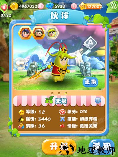 3. 玩家可以通过购买和升级果宝牌来增加攻击力,并在游戏中合理使用道具来增加消除效果。