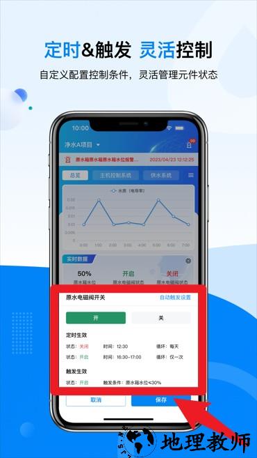 4、智能条件控制:支持定时与触发两种模式,自定义设置设备管理规则。