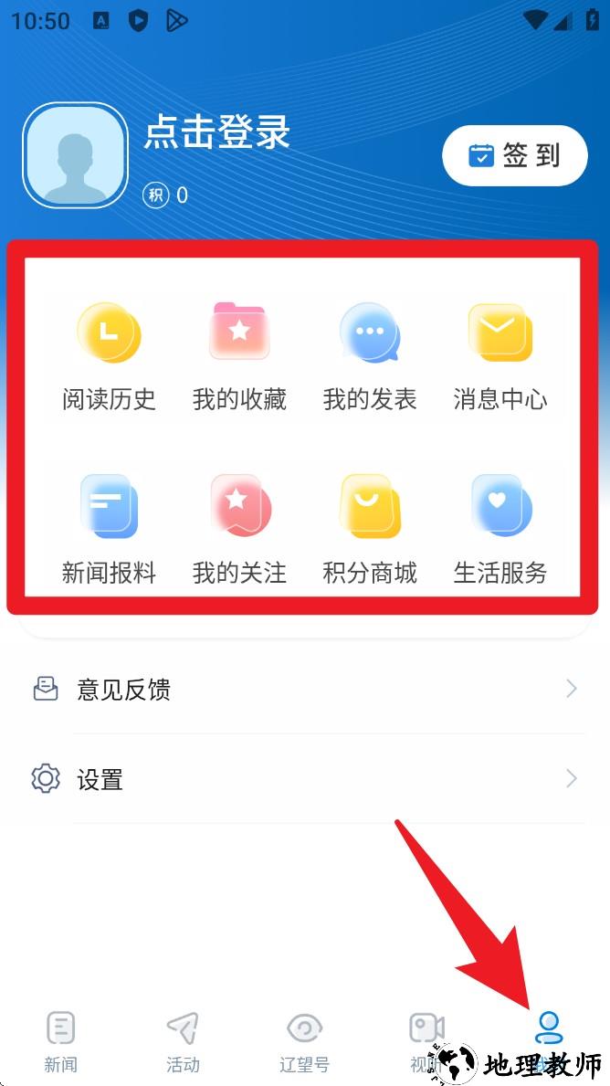 5. 进入我的页面可查看阅读历史、发言记录、关注账号及积分商城,还可进入设置中心进行个性化调整。‘
