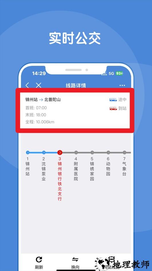 2、 实时位置追踪:可随时查看线路车辆实际位置,同时提供实景地图与示意图两种展示模式。