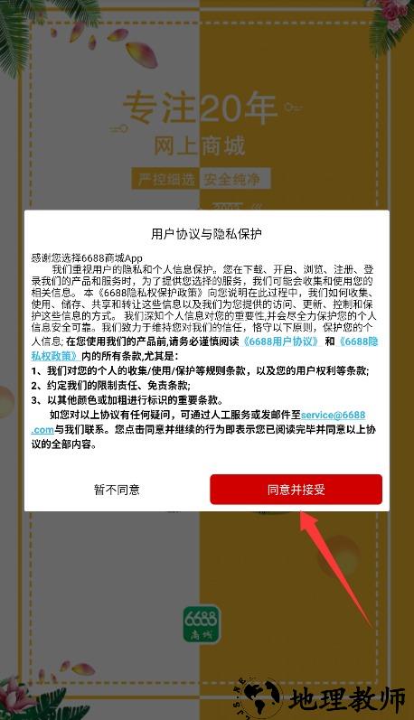 1、初次使用需阅读平台服务条款与隐私政策,确认后点击同意按钮进入应用。