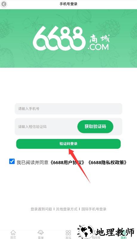 3、填写手机号获取验证码,勾选同意相关协议后点击登录即可完成账号登录。
