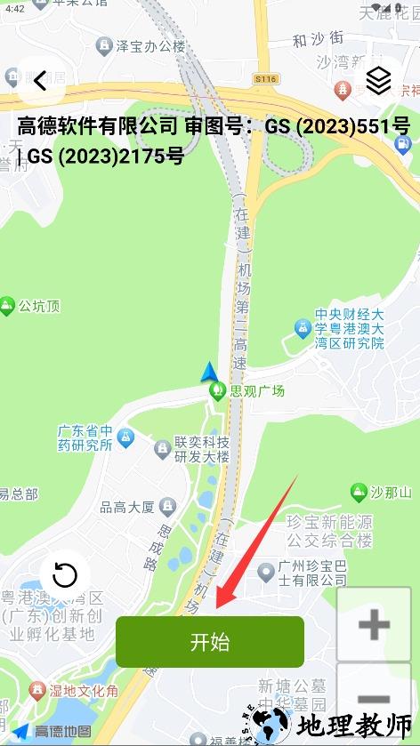 3、点击开始后驾车环绕待测地块,系统自动记录轨迹,完成测量后点击结束生成结果。