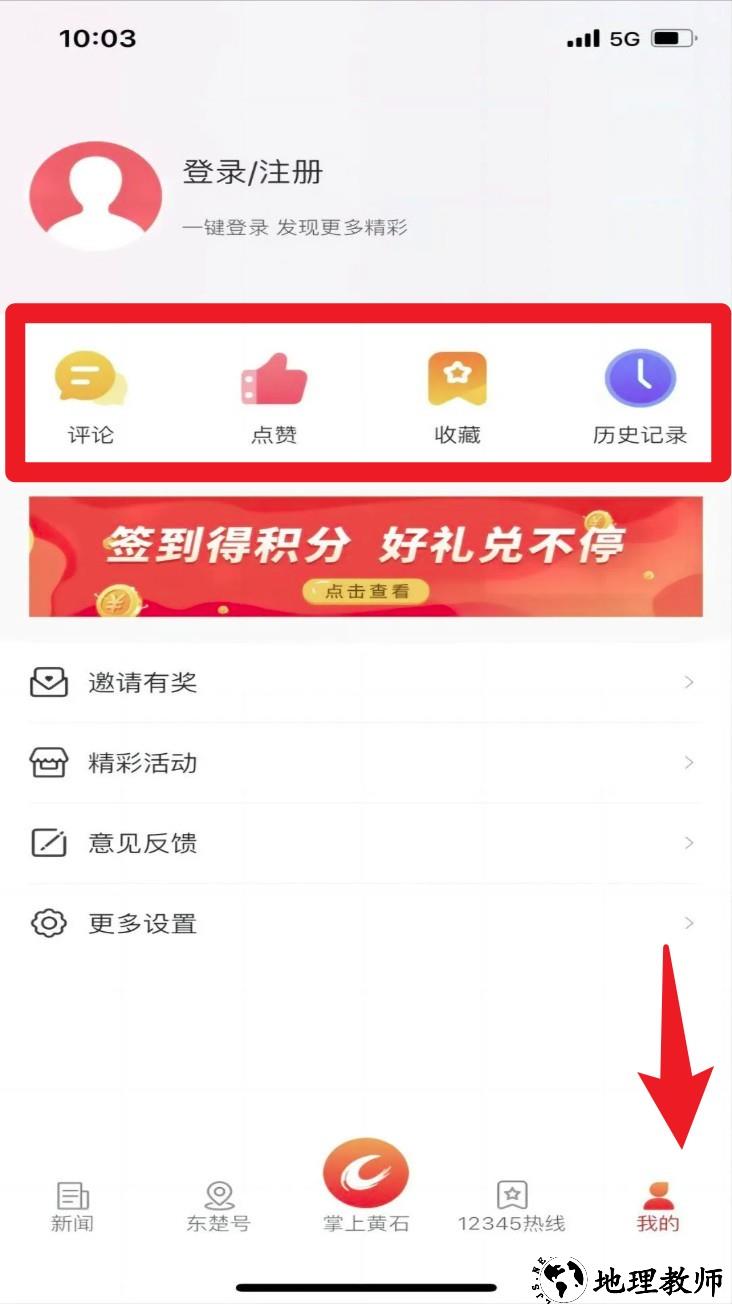 4. 在我的页面可查看历史记录、点赞、收藏等个人行为数据,也能设置账号与查看积分活动。