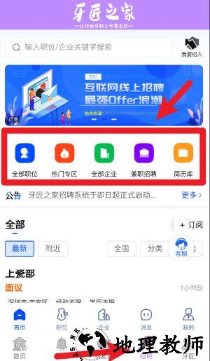 5、招聘页面可选择查看全部职位、热门专区、兼职招聘等,还提供简历库功能助力职业发展。