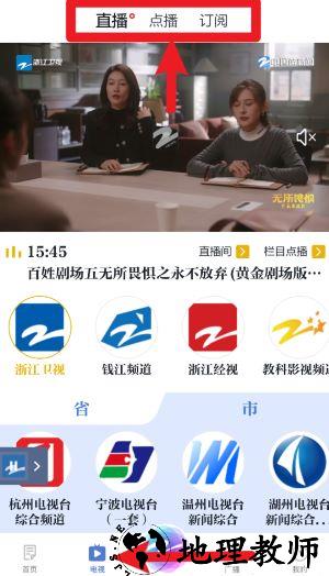 3、点击底部电视图标进入电视专区,支持查看浙江各频道的直播、点播与订阅功能。