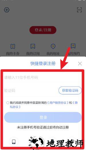1、打开APP,点击首页登录/注册按钮后,输入手机号并获取验证码即可完成快速登录或注册操作。