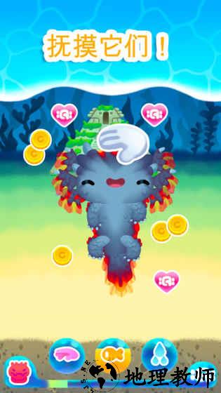 1. 抚摸互动:玩家可以通过触屏滑动抚摸蝾螈,增加它们的开心值。