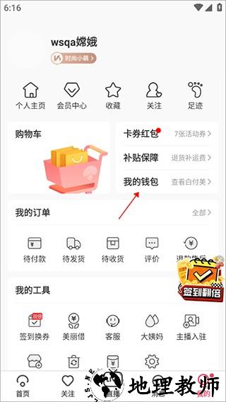 1、打开蘑菇街女装 app,点击右下角 “我的”,进入个人中心页面。