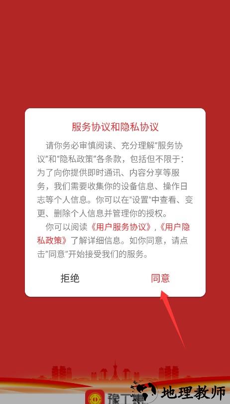 1、初次使用需阅读平台服务条款与隐私政策,确认后点击同意按钮进入应用。