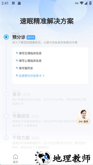2、服务:通过预分诊、首访、专属报告、干预方案为用户定制睡眠健康解决方案,且配备 24 小时客服随时响应需求;