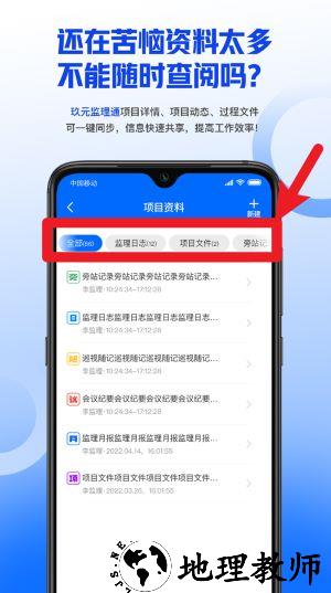 2、在项目资料页面可快速筛选全部资料、监理日志及项目文件,实现分类型便捷查询。