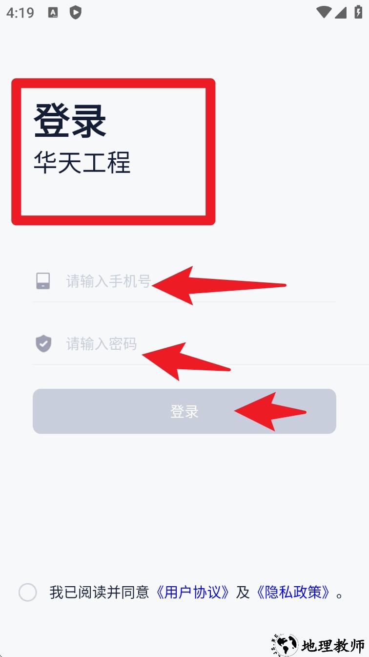 1. 打开App之后,输入手机号与密码登录,勾选协议后点击下方按钮完成验证。