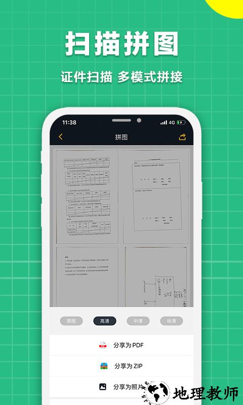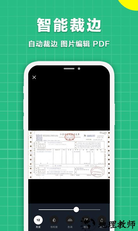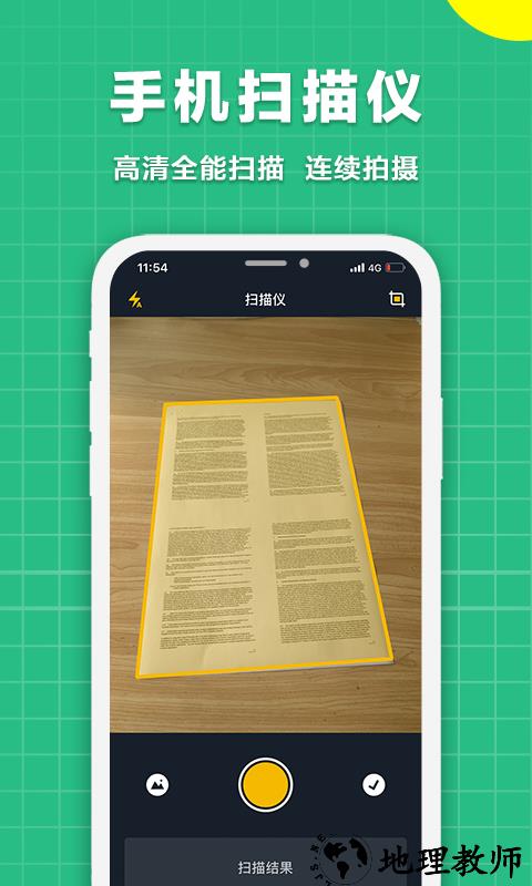 2. 智能切边:无需摆正姿势拍照,任意角度拍摄,软件都能自动切边并去除杂乱背景,生成标准扫描件。