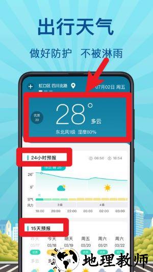 2、打开天气页面即可查看当前气温、湿度与风级,还可浏览未来24小时及15天天气变化趋势。