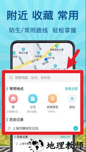 1、打开APP,点击搜索框可添加或管理常用地址,快速设置家、公司等地点方便日常通勤使用。