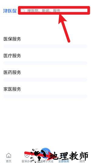 4、在全部服务页面中点击顶部搜索栏,输入关键词即可快速查找医院、资讯、医保相关服务。