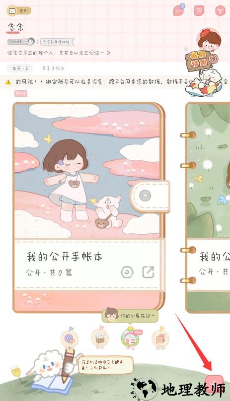 1、打开应用进入主页面,找到右下角醒目的加号按钮,点击即可开始新建手帐本。