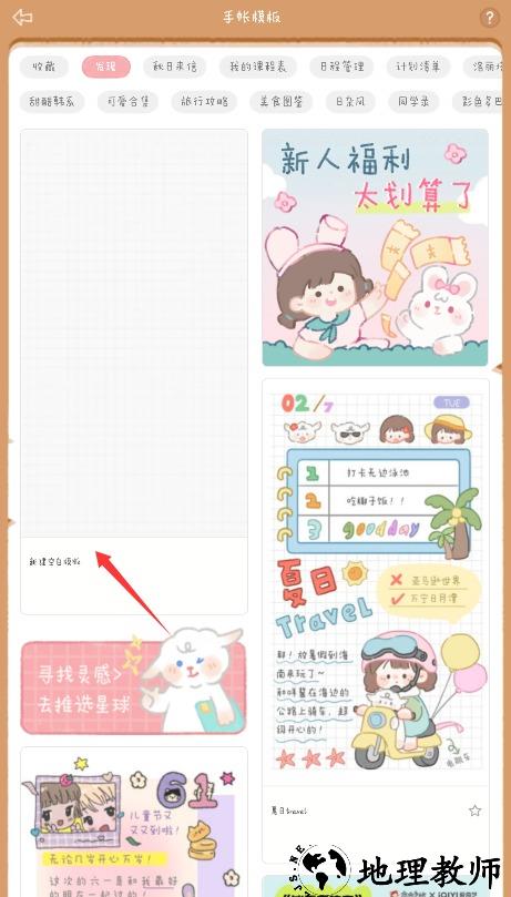 3、从精美模板库中挑选喜欢的样式,点击创建后即可自由编辑文字、添加贴纸等元素完成个性化手帐。