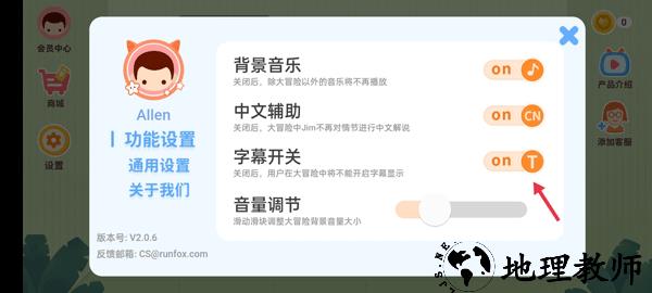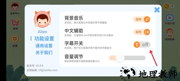 4、若需开启字幕,将开关状态调整为 “on”,设置完成后字幕即可正常显示。
