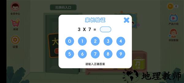 2、点击设置按钮后,会弹出家长身份认证的数学公式,准确输入计算结果完成认证;