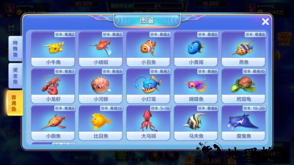 ④河豚鱼:吃5号炮,鼓起来的时候一般不打,这时命中率会变低一些。所以在河豚鱼和乌龟或灯笼一起出来的场景,一定要用5号炮,因为可以粘中河豚鱼。