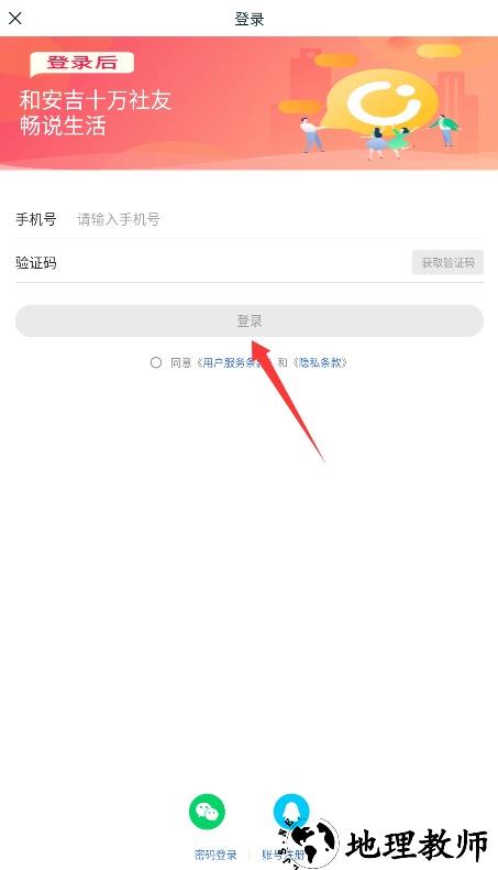 1、使用手机号接收验证码完成登录验证,勾选同意用户协议后进入应用主页面。