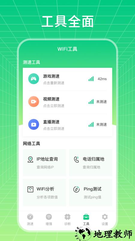 5. 工具箱:内置ping测试、游戏ping、跟踪路由等实用工具,方便用户进行更深入的网络管理。