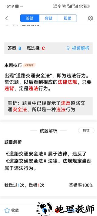 3、练习模式:答题答错时,平台会提供题目解析、视频解析助理解,可将错题加入收藏夹,实时查看答题正确率与进步情况。