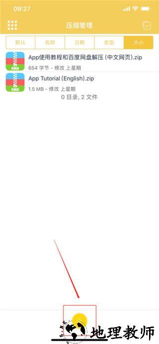 2、安装好后,在手机桌面找到 “解压专家” App 并打开,点击界面底部黄色 “+” 号。