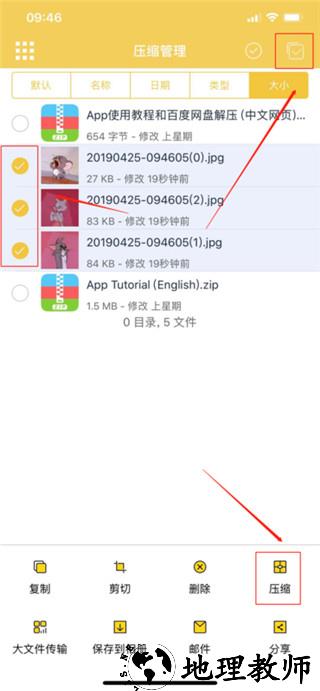 5、点击界面右上角压缩文件的选中按钮,选中所有上传的照片,再点击 “压缩”。