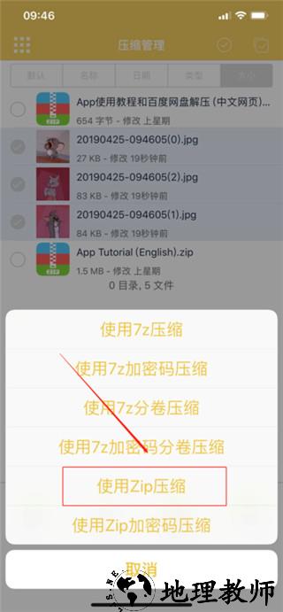 6、弹出压缩形式选择界面,选择 “使用 zip 压缩”,也可按需选加密压缩等方式。