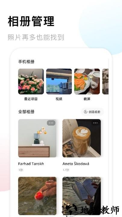 我爱相册app是比手机相册还要好用的相册管理工具。很多朋友的相册有上万张照片,管理起来非常麻烦,而该软件拥有多种分类方式,可按照格式分为照片和视频,按照照片内容分成人像、景色、植物、动物等,还可以按照时间远近来划分,这样查找照片会十分便捷。