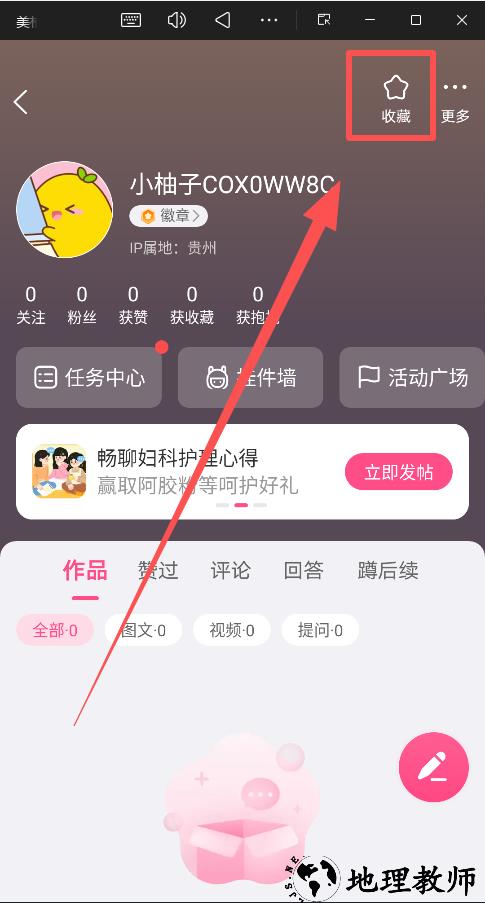 2、在个人中心页面中找到并点击"收藏"选项;